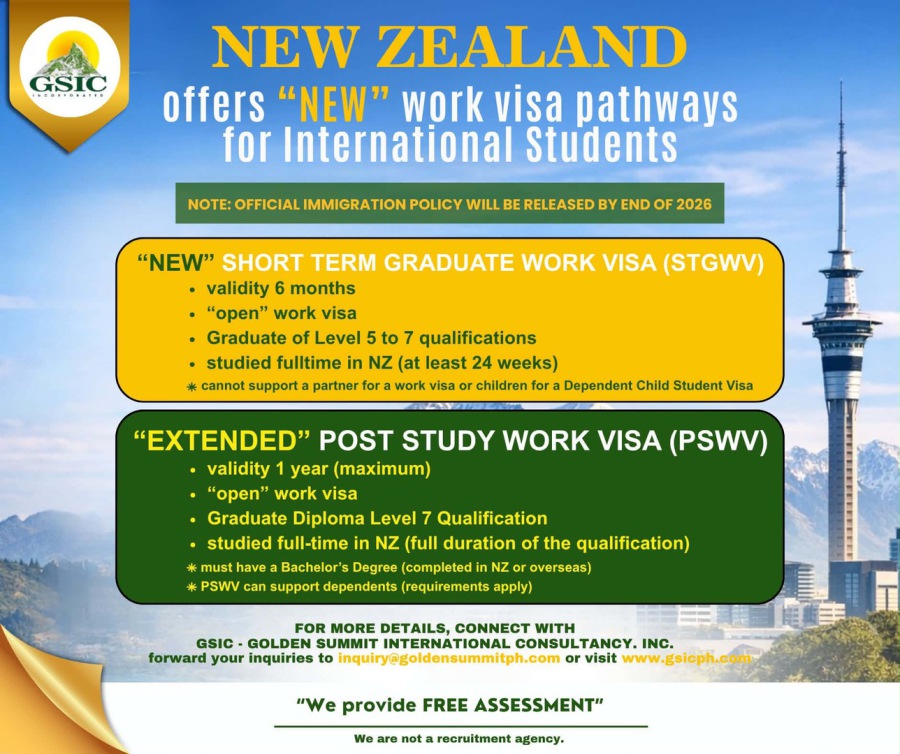 GSIC - Golden Summit International Consultancy, Inc. provides up-to-date, straight-forward and useful information that will aid Filipino professionals in their decision to immigrate to New Zealand. We guide our clients in each and every step of the immigration process while recognizing our important role as a partner to their future!